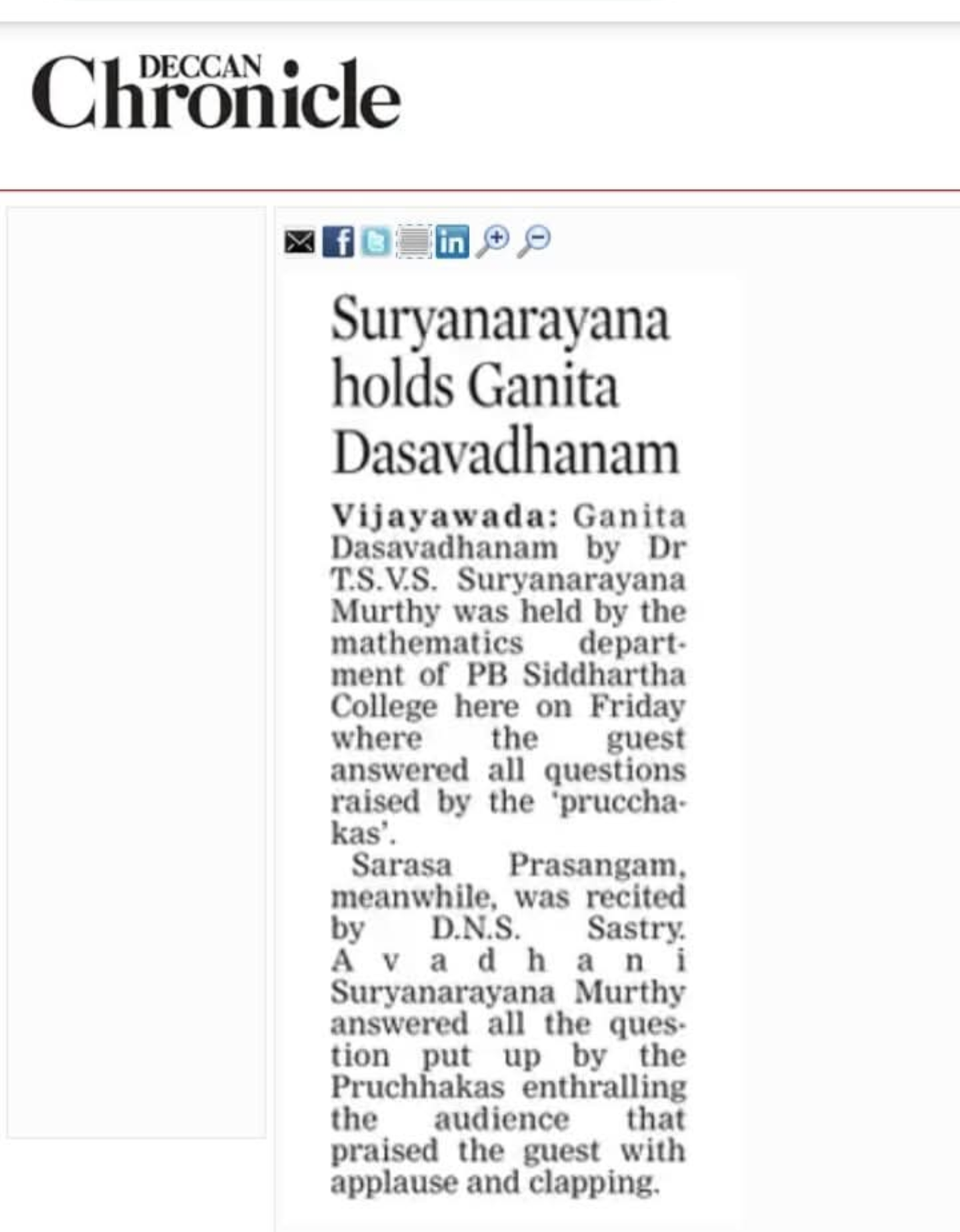 Ganita Avadhani's performance at our school was nothing short of miraculous. The students were mesmerized by his mathematical abilities.